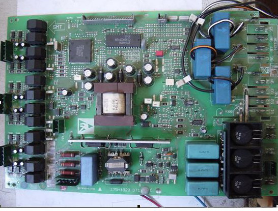 由于這幾臺(tái)VLT3000變頻器是小功率的,因此拆裝非常的方便。先檢查變頻器的主回路,測(cè)量整流模塊和逆變模塊特性良好。給變頻器的輸入端送交流電,發(fā)現(xiàn)變頻器的操作面板沒有顯示。等變頻器主回路上直流電壓釋放完全后,將變頻器的上蓋板拆下,接下來就露出來變頻器的控制卡,拆除變頻器控制卡上的兩根電纜連接線,取出控制卡。變頻器ILD卡就出現(xiàn)在我們的面前。將變頻器的ILD卡取出來做單板測(cè)試,發(fā)現(xiàn)變頻器操作面板沒有顯示,確定變頻器的ILD卡損壞。