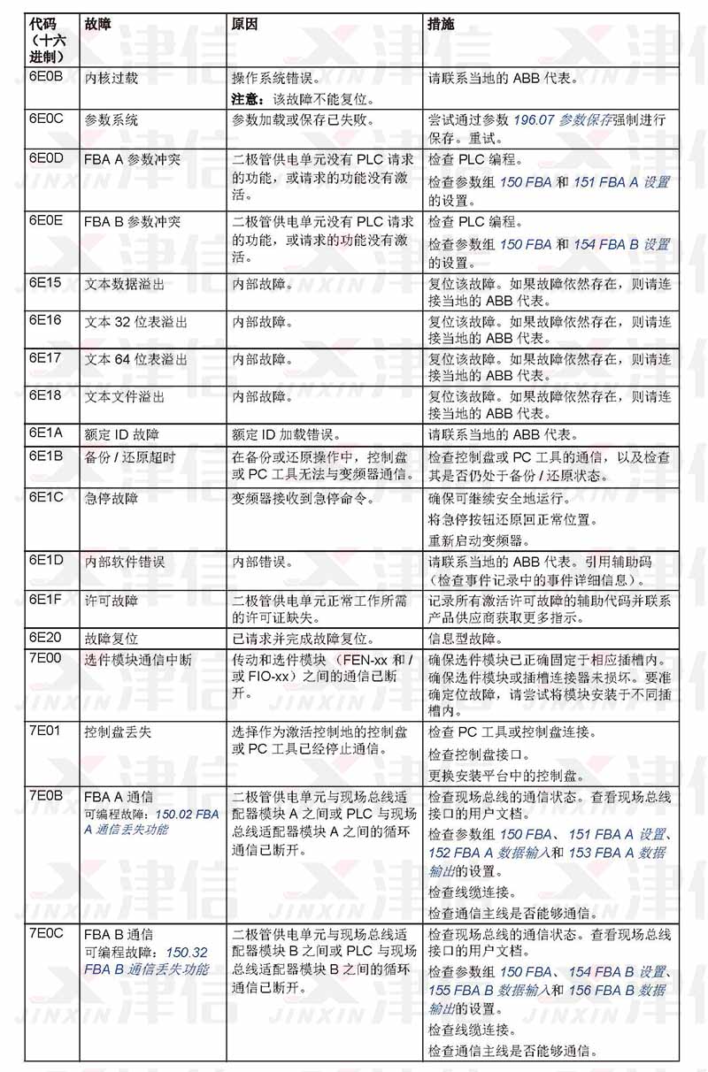 ABB ACS880在使用過程中,如果出現故障,可以在面板上查詢故障代碼,并根據相應故障代碼分析故障原因和采取維修措施進行修復。常見故障代碼如下: