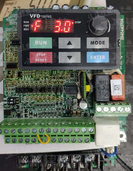 用戶送修一臺臺達C200系列變頻器到上海津信維修服務中心(如下圖1),送電顯示cd3.1(如下圖2所示),不可復位,斷電重新上電后依舊報警,查看C200系列說明書可知,該故障為W相電流偵測異常。