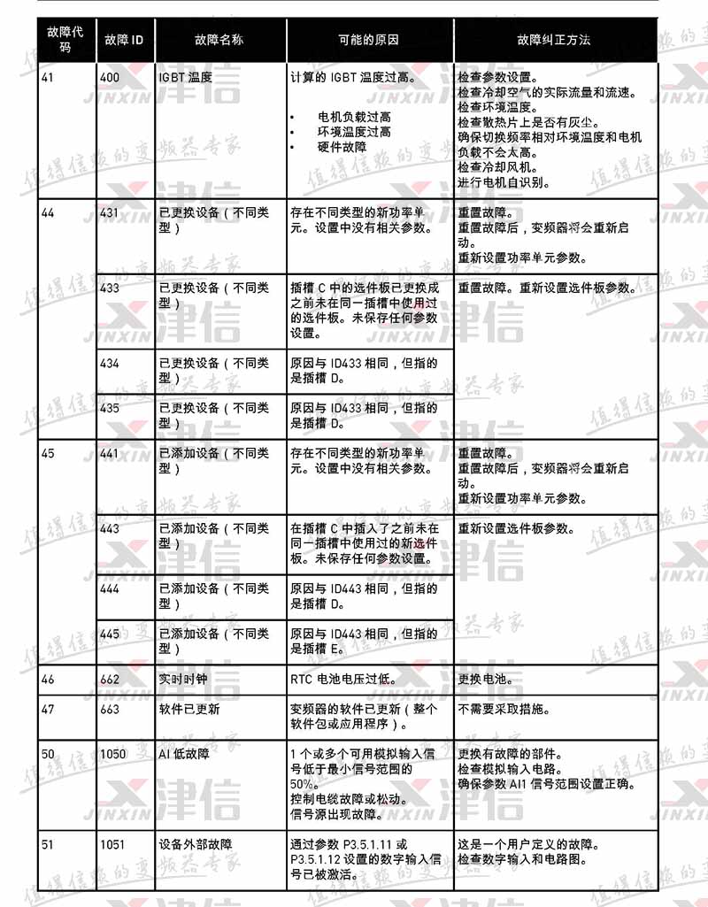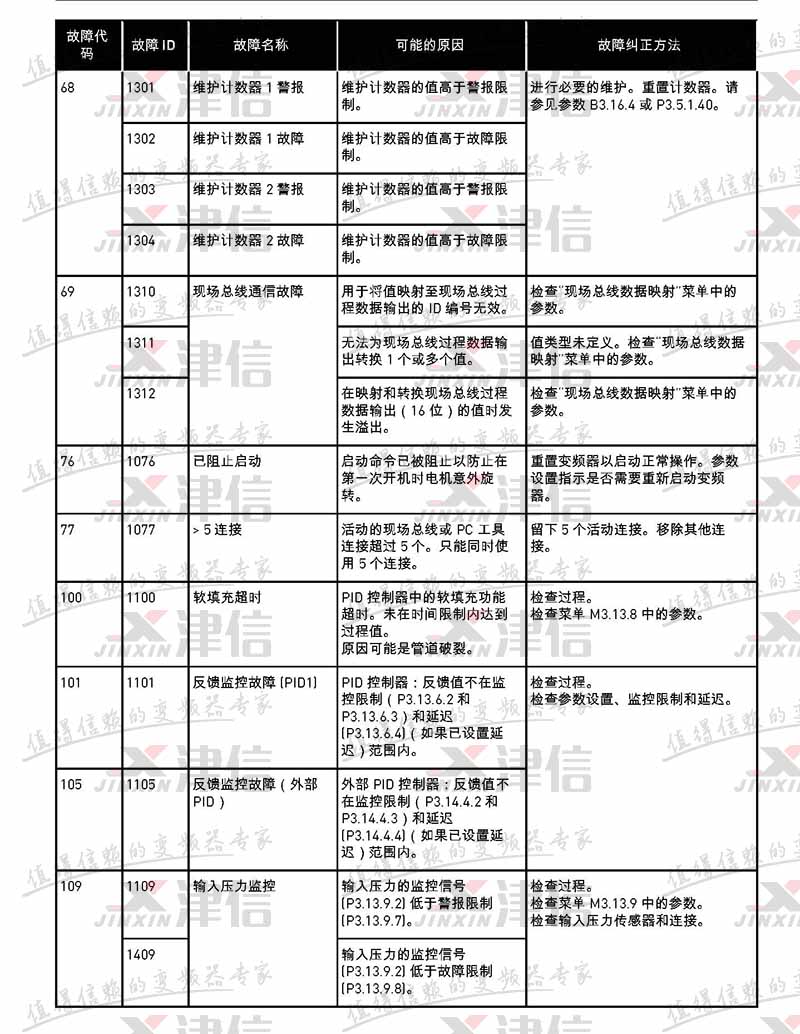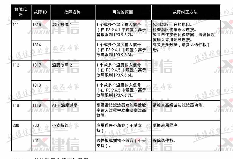 | 故障代碼 | 故障 ID | 故障名稱 | 可能的原因 | 故障糾正方法 |