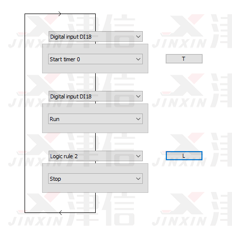 Logic Rule 1判斷是否符合停止條件。在運行過程中,如果按下停止按鈕,27號端子斷開,經過邏輯判斷,滿足停機要求,變頻器將停止輸出。