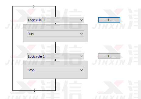 斷線停機功能通過SLC邏輯輔助完成。SLC邏輯流程圖如下,Logic Rule 0判斷是否符合啟動條件,Logic Rule 1判斷是否符合停止條件。
